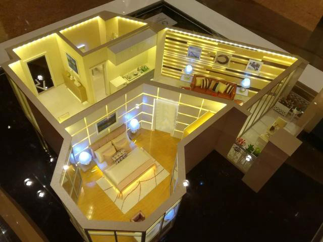 戶型模型制作上,根據(jù)設(shè)計圖合理布局,反復(fù)打磨,結(jié)合暖色燈光效果,打造了色彩協(xié)調(diào)、質(zhì)感強的視覺體驗。不僅給人以溫馨之家的感覺,同時,還吸引了購房者購買欲望。
